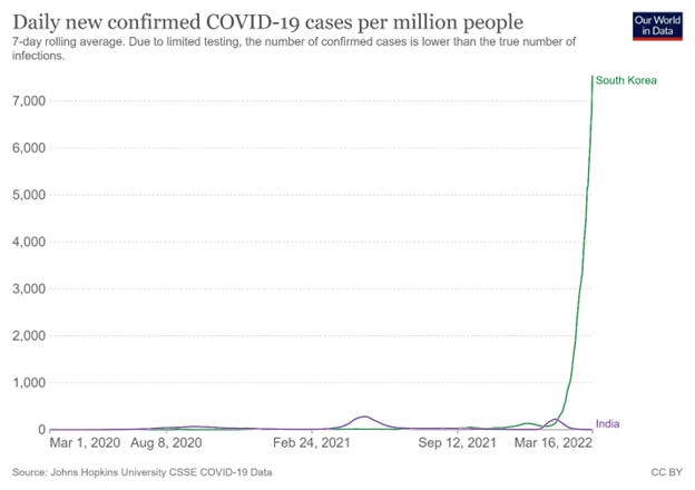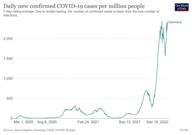 Two other very heavily vaccinated countries saw their case rates skyrocket following mass vaccination. Here are South Korea and Germany: [29]