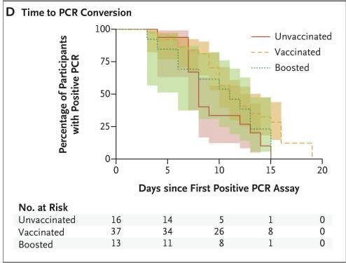 The New England Journal of Medicine shows that those who are fully vaccinated and boosted against COVID-19 recover significantly more slowly from the illness and remain contagious for longer periods of time after SARS-CoV-2 infection. [9]