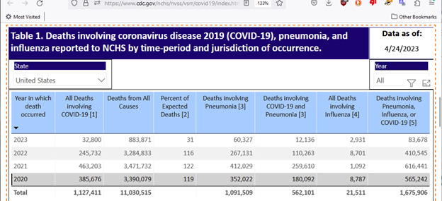 Note to readers: I have updated this article on 4/24/23 showing a CDC contradiction regarding 2020 all cause mortality, with commentary. See the next 3 paragraphs. I then updated it again on 5/18/23, to correct a typo in one of the cited links, as well as a misplaced link. Thanks to an alert reader.